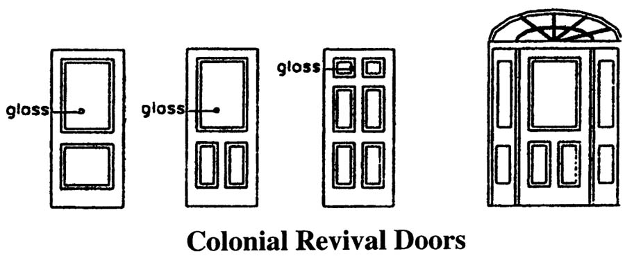 • Doors leading to the exterior gardens, patios, and balconies are usually paired and glazed with multiple panes of rectangular glass.