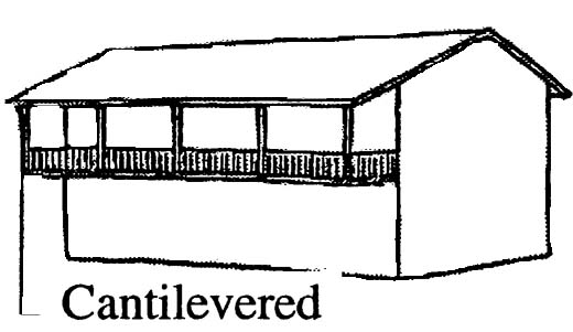 Cantilevered - A projecting structure, such as a beam, that is supported at 1 end and carries a load at the other end or along its length. A member, such as a beam, that projects beyond a fulcrum and is supported by a balancing member or a downward force behind the fulcrum. A bracket or block supporting a balcony or cornice.