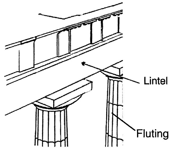 Lintel - A horizontal structural member that supports a load over an opening.