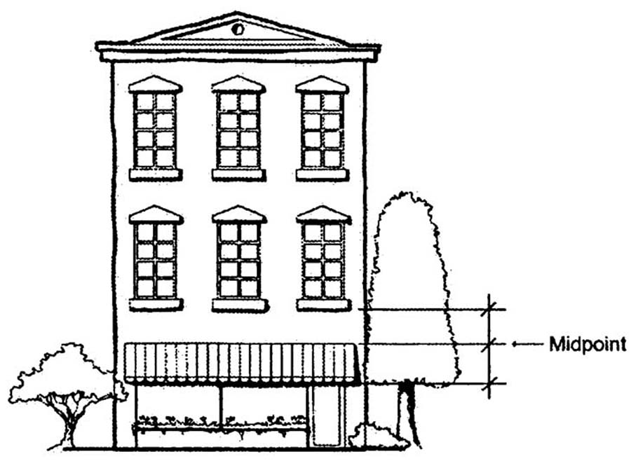 • Eaves, cornices, and façade detailing emphasizing horizontal lines.