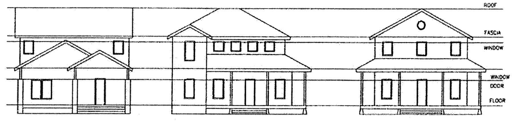 • Contrasting wall materials or trim emphasizing the upper part of the upper story.