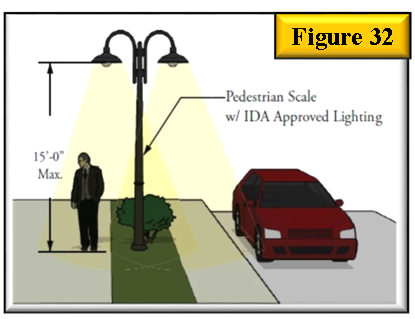 Light pole heights in all parking areas shall not exceed 15 feet. See figure 32.