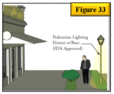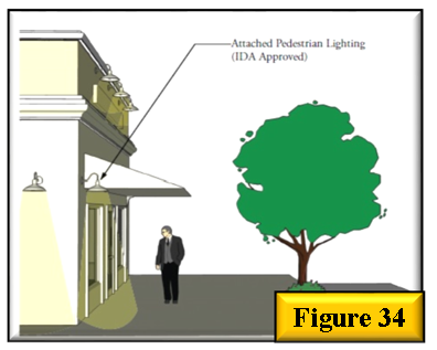 A pedestrian lighting plan shall incorporate a combination of pole light, bollard light and accent lighting. See Figure 32, Figure 33, and Figure 34.