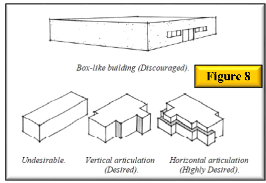 Big box type structures with architectural appliques are not compliant with this schedule and applications for such development approval shall be denied.