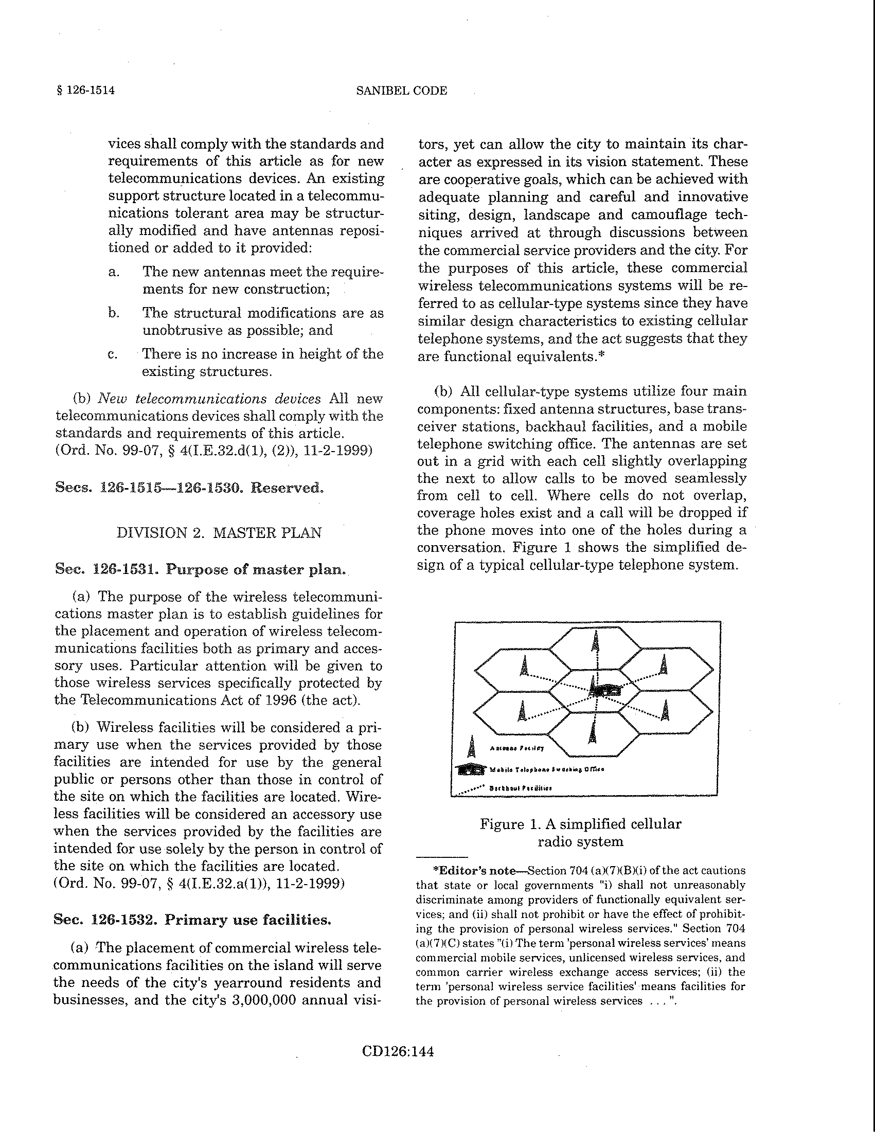The placement of commercial wireless telecommunications facilities on the island will serve the needs of the city's yearround residents and businesses, and the city's 3,000,000 annual visitors, yet can allow the city to maintain its character as expressed in its vision statement. These are cooperative goals, which can be achieved with adequate planning and careful and innovative siting, design, landscape and camouflage techniques arrived at through discussions between the commercial service providers and the city. For the purposes of this article, these commercial wireless telecommunications systems will be referred to as cellular-type systems since they have similar design characteristics to existing cellular telephone systems, and the act suggests that they are functional equivalents. [13]