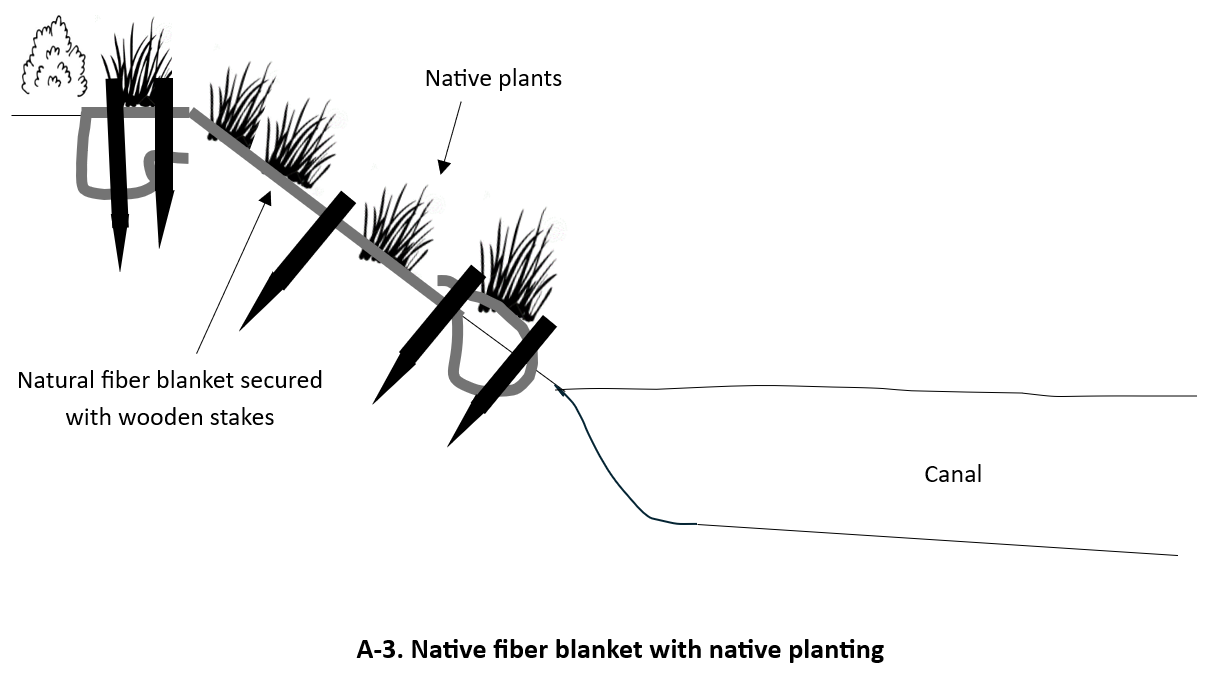 A turbidity and erosion control plan must be included in the design documents. Turbidity screening shall be employed prior to construction and remain in place a minimum of 24 hours after completion of construction to ensure protection of water quality in the area. Erosion control measures must be installed landward of the seawall upon completion of construction and remain in place until the upland area disturbed during construction is stabilized with vegetation.