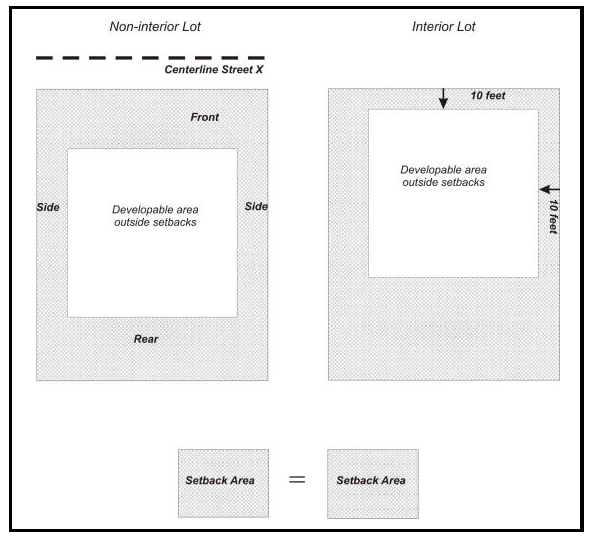 Street Frontage. The length of street frontage is measured along the property line adjacent to the public right-of-way.
