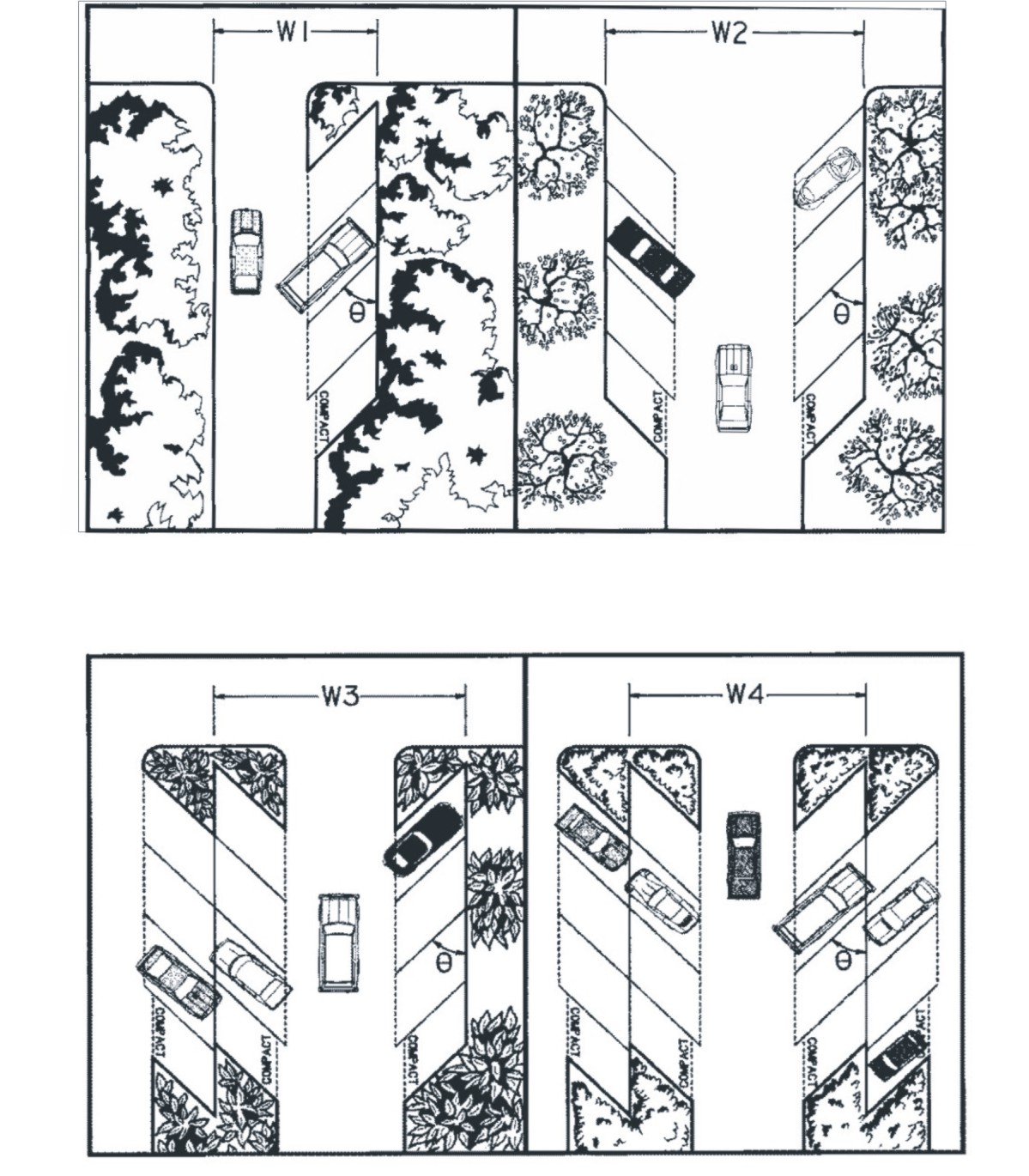 Low-lying landscaping and vegetative screening that does not include trees or hedges exceeding three feet in height.
