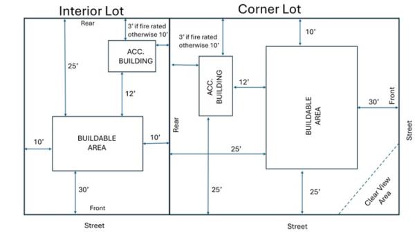 | Rear yard | 30 feet | 30 feet |