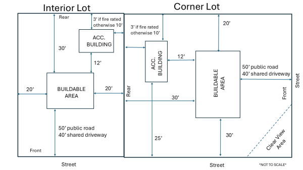 | Accessory Structure | Not permitted | 20'2 | 8'3 | 10'3 |