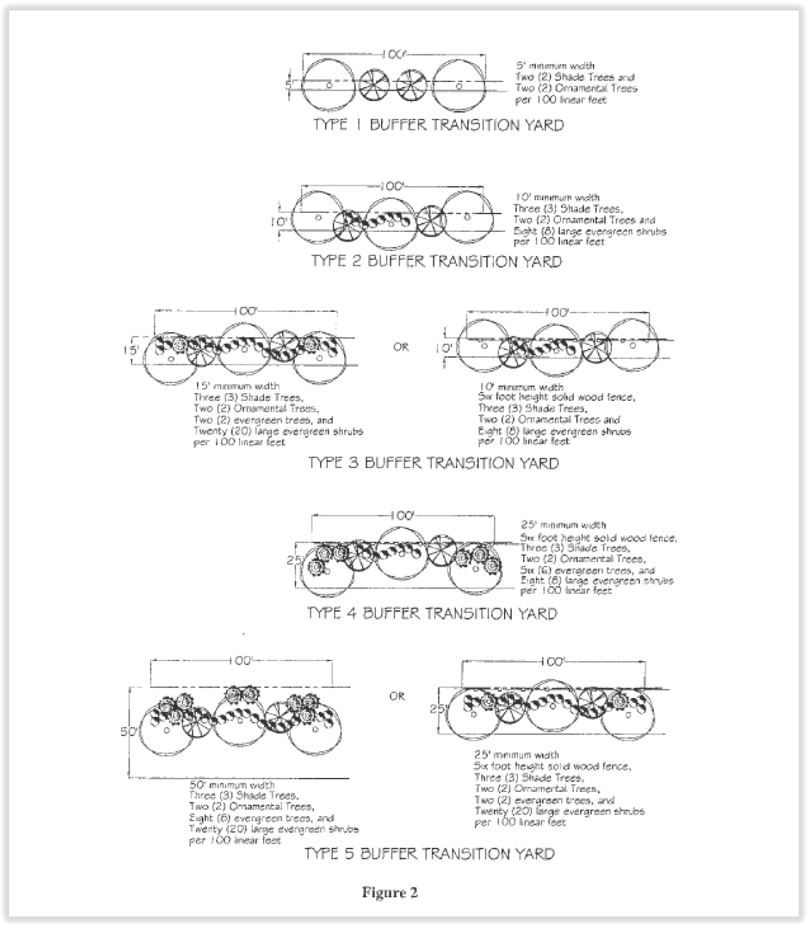 The figures are minimum requirements; however no one species shall be outnumbered by another species in the same classification type by a ratio of more than 2:1. This is to promote diversity of species and encourage diversity of canopy and shrub type.