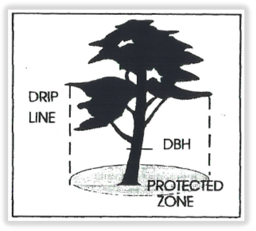 After the necessary permit approvals have been granted, and before any site work has begun, the developer shall cause protected trees to be marked with surveyor's flagging. During development, a minimum protective zone, marked by barriers, shall be established at the "drip line" and maintained around all trees to be retained as required by this Section. There shall be no construction, paving, grading, operation of equipment or vehicles, or storage of materials within this protected zone.