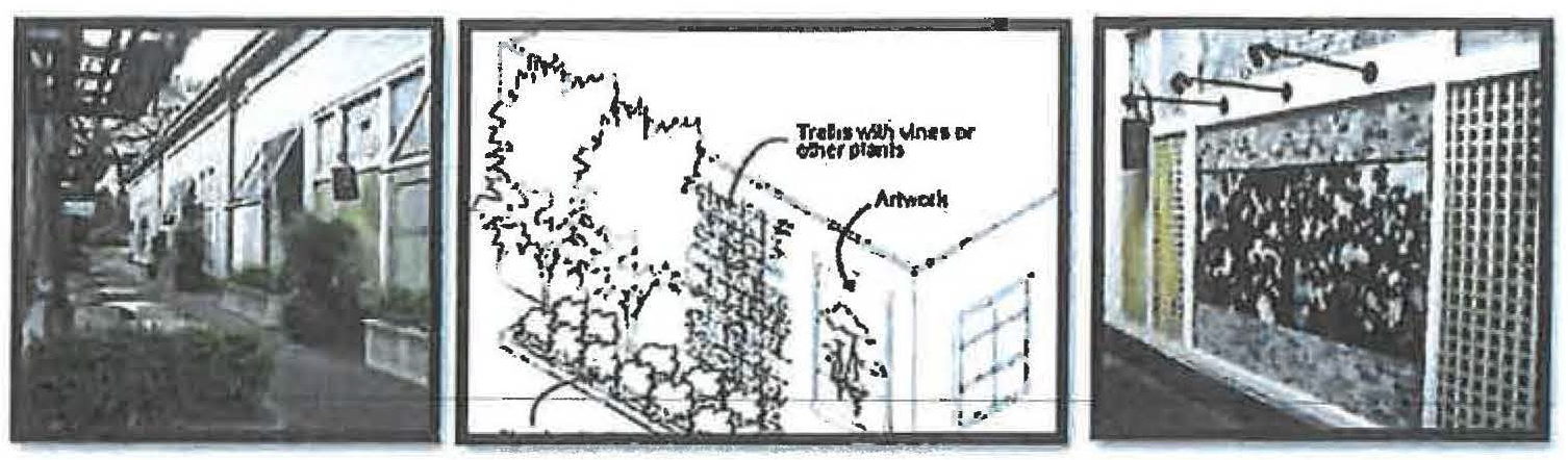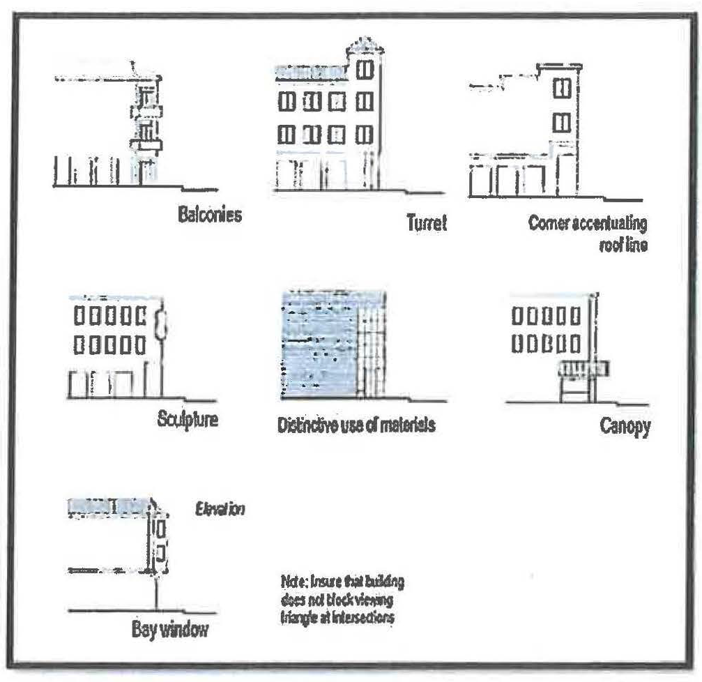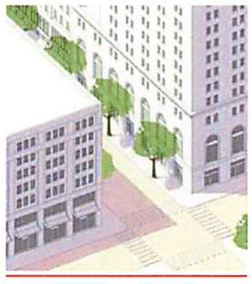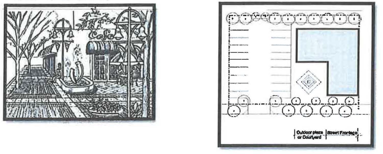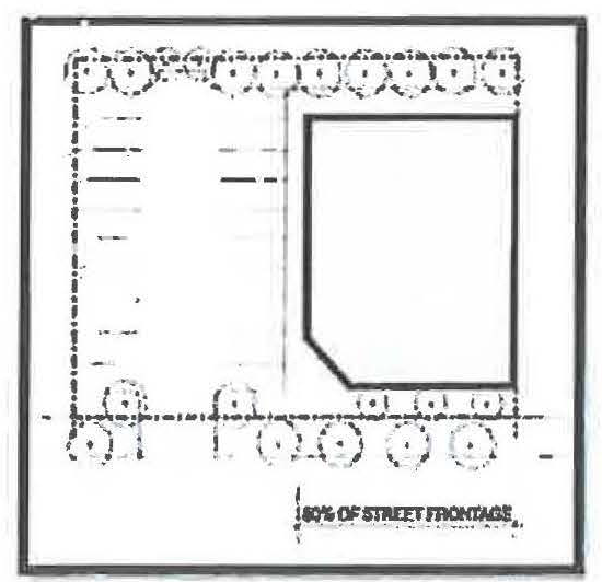 For example, the DTN zone allows "common lawn" and "porch and fence" frontage types. Since both types are permitted it is permissible to have a common lawn with either a porch or a fence. In another illustration, the DTC zone would permit a facade close to the frontage line without a awning, gallery or arcade attached, unless it were located on a required retail frontage.
