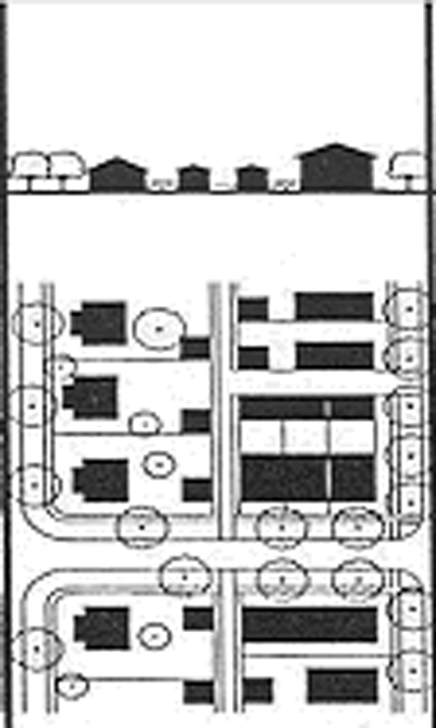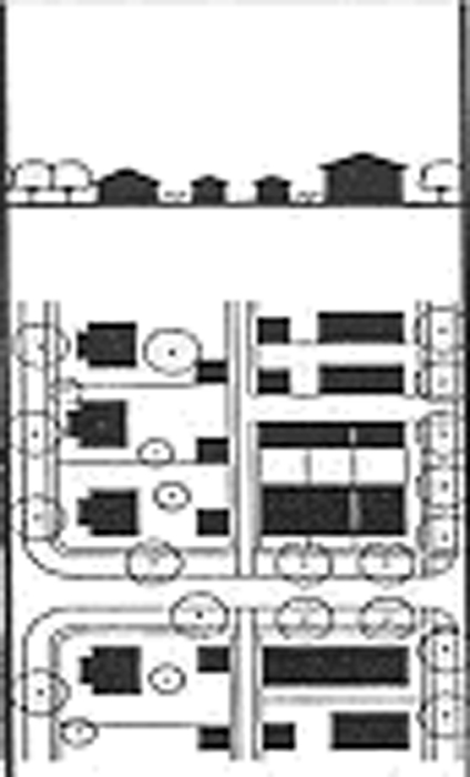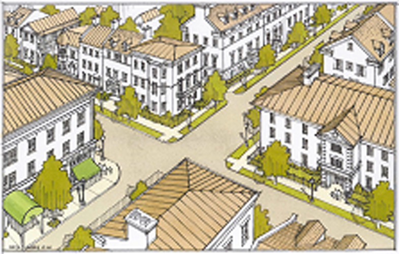 Commercial centers should divide development area to create smaller blocks and a network of interconnected streets.