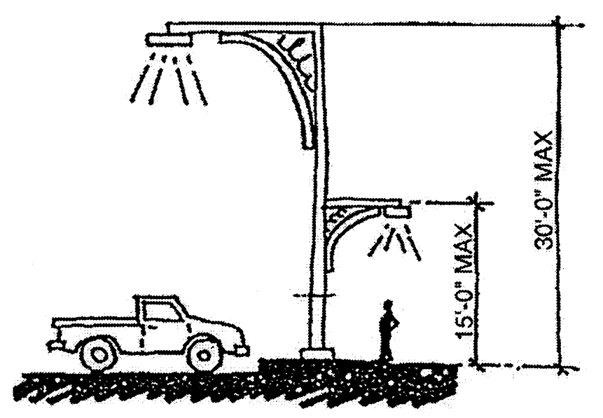 On poles up to 40 feet in height, the maximum height of banners shall be 18 feet and the minimum height of banners shall be eight feet.