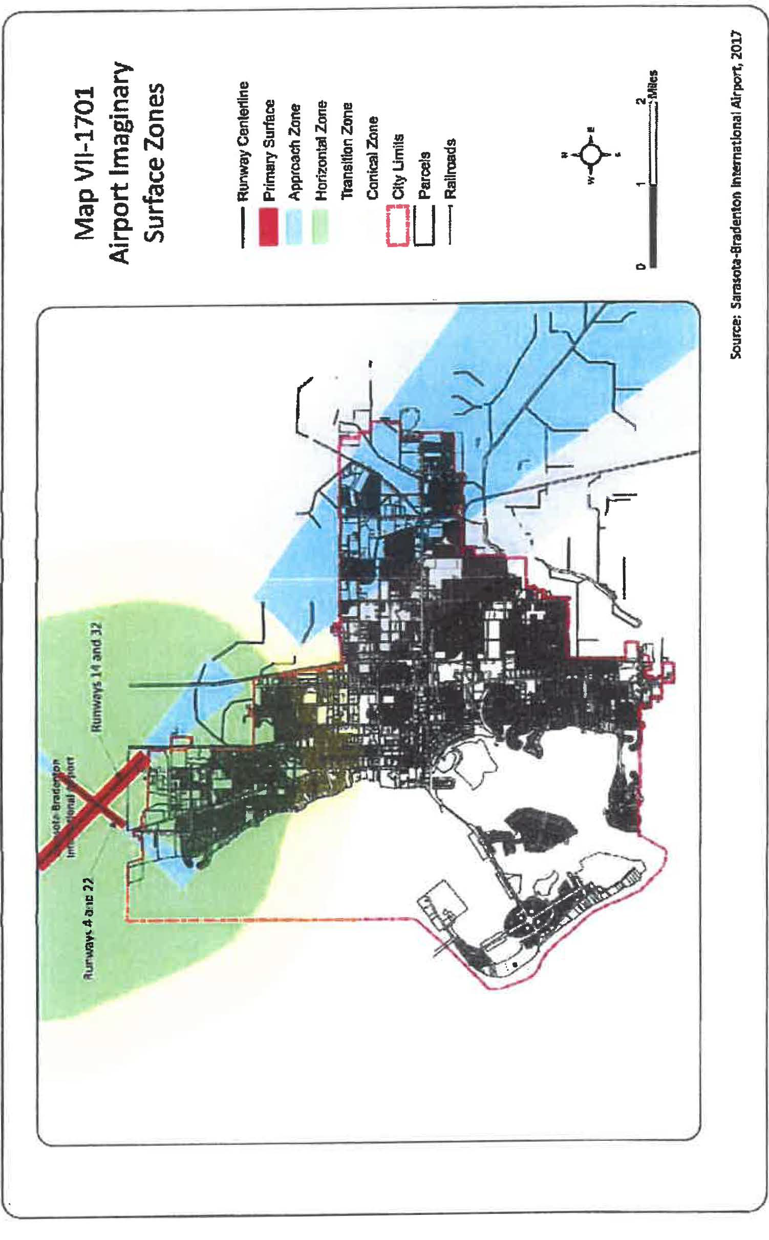 The application proposes the development of a sanitary landfill located within 10,000 feet from the nearest point of any runway at the airport, or located more than 10,000 feet from the nearest point of any runway at the airport, but still within the lateral limits of the civil airport imaginary surfaces depicted on map VII-1701, airport imaginary surface zones.