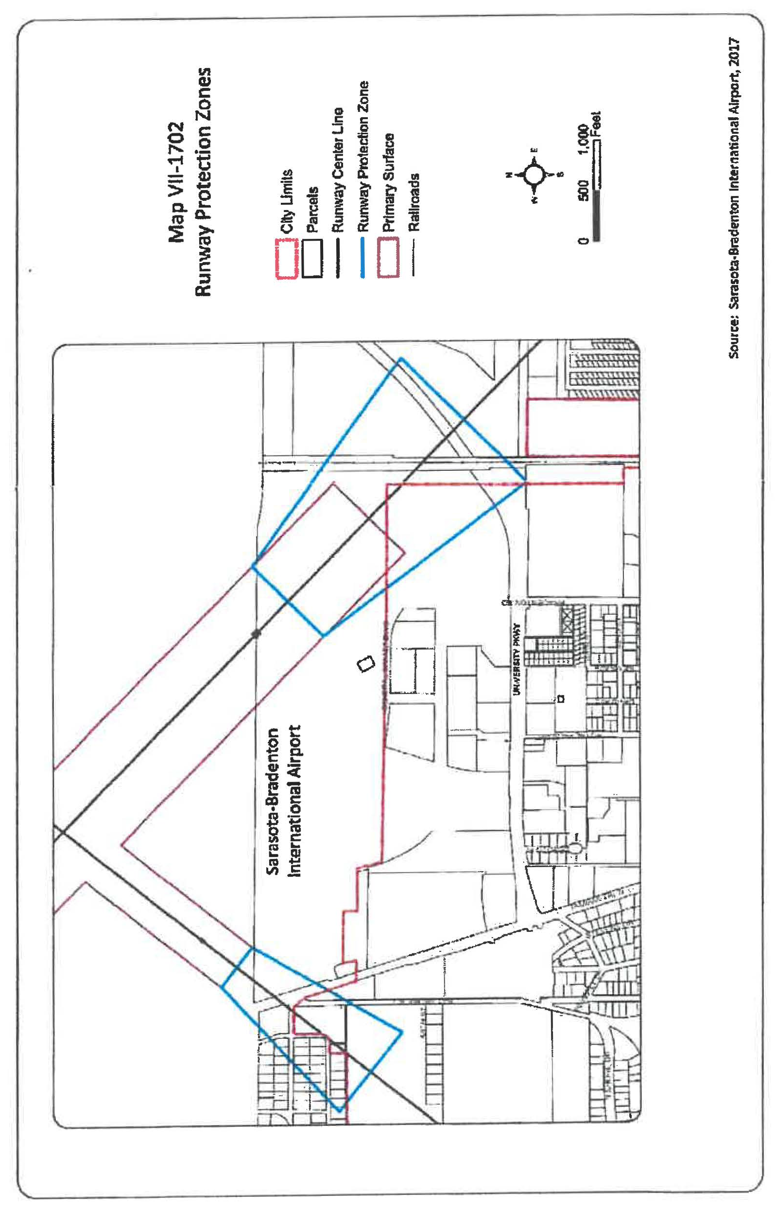 New incompatible uses, activities, or substantial modifications to existing incompatible uses within the airport's runway protection zones. Incompatible land uses prohibited from the runway protection zones are: residential, commercial, industrial, institutional and places of public assembly, such as churches, and other uses with similar concentrations of persons typify places of public assembly. See map VII-1702, runway protection zones.