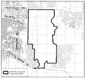 Village Area, Central. That area depicted as 'Village Land Use' on Comprehensive Plan Chapter 8 'Figure RMA-3 Village/Open Space RMA Land Use Map' south of Fruitville Road and north of Clark Road (also known as State Road 72).