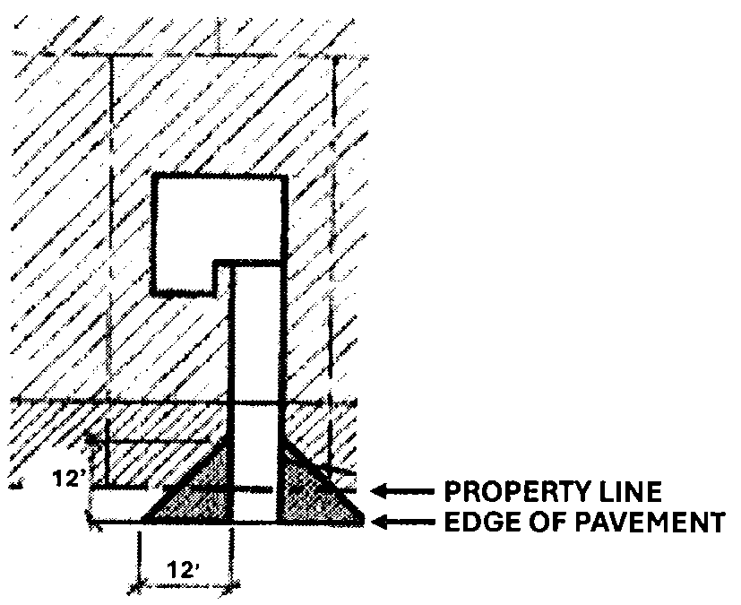 Driveway intersections. No fence, hedge, retaining wall, entryway element, pilaster, gate, or other similar element located within a triangle having sides twelve feet in length from either side of a driveway where it intersects with the edge of pavement on a street without a sidewalk (or, on a street with a sidewalk, the back of the curb) shall exceed three feet in height above the established grade of the adjoining street. Protected trees described in Section 15-50.050 of this Code are not subject to this requirement.