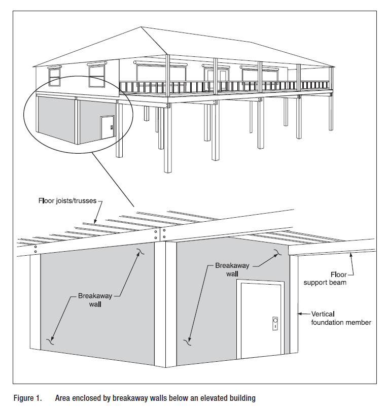Breakaway walls means a wall that is not part of the structural support of the building and is intended through its design and construction to collapse under specified lateral loading forces, including wind and water, without causing damage to the elevated portion of the building or supporting foundation system.