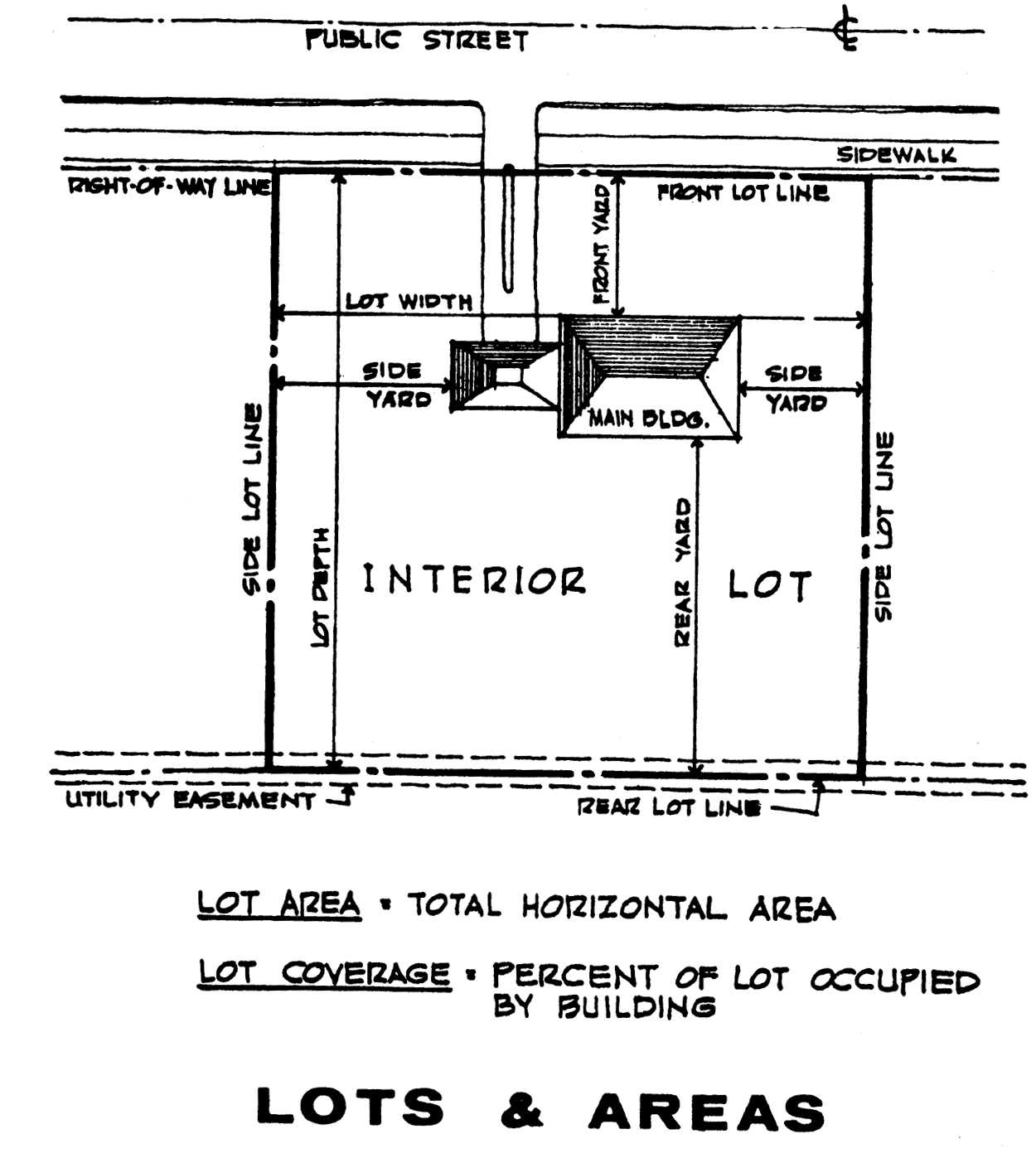 Front yard: Is an open space extending the full width of the lot, the depth of which is the minimum horizontal distance between the front lot line and the nearest line of the main building.