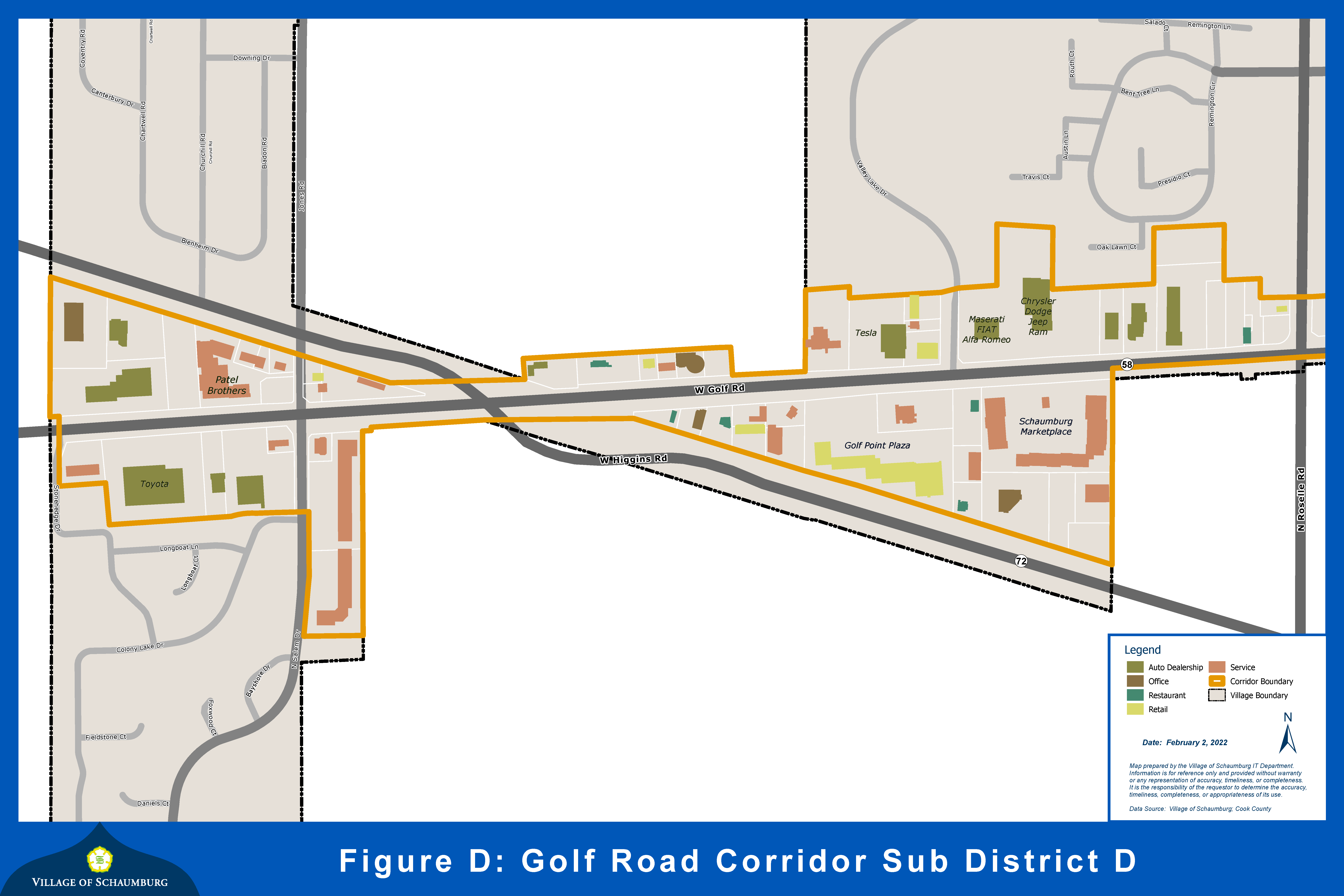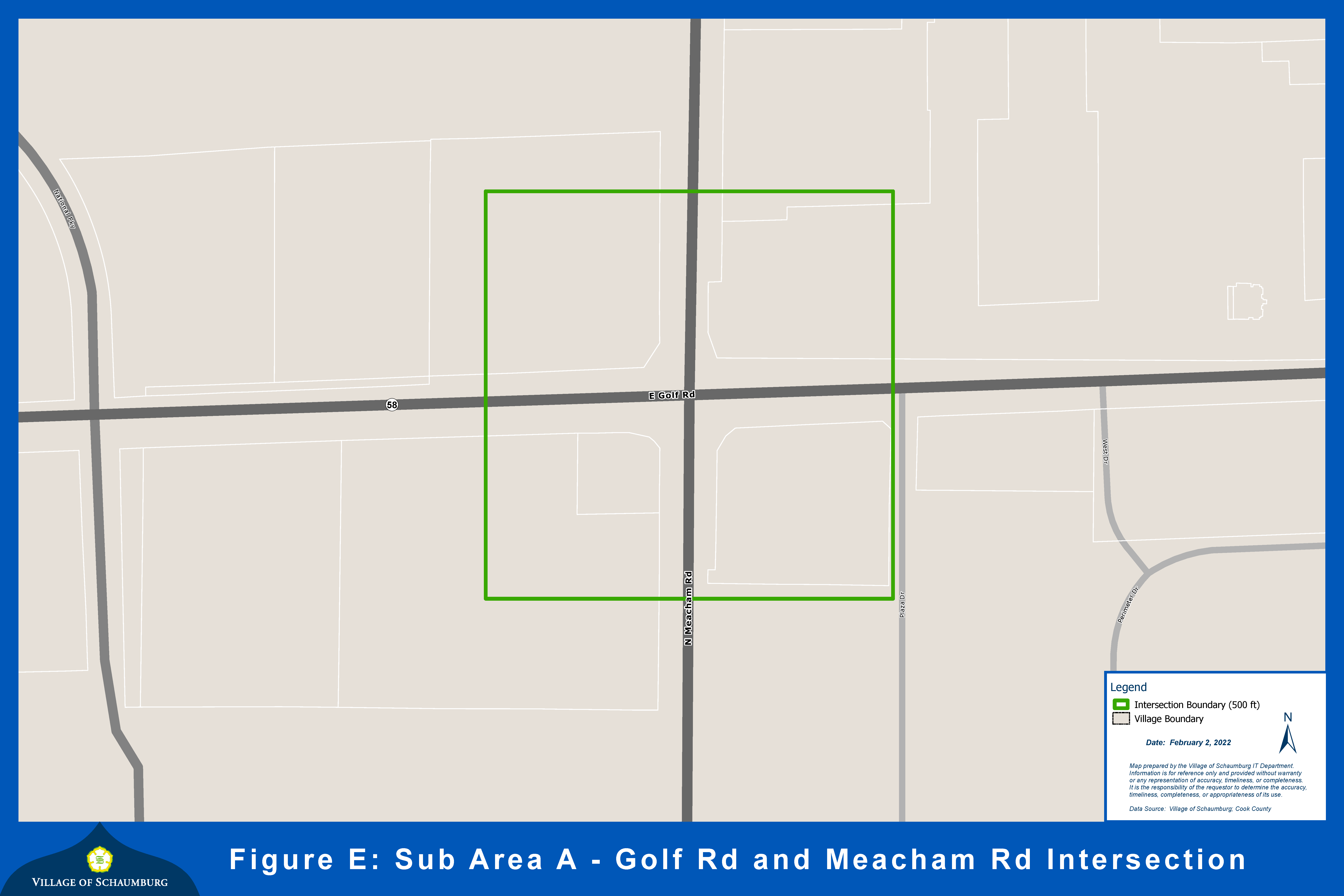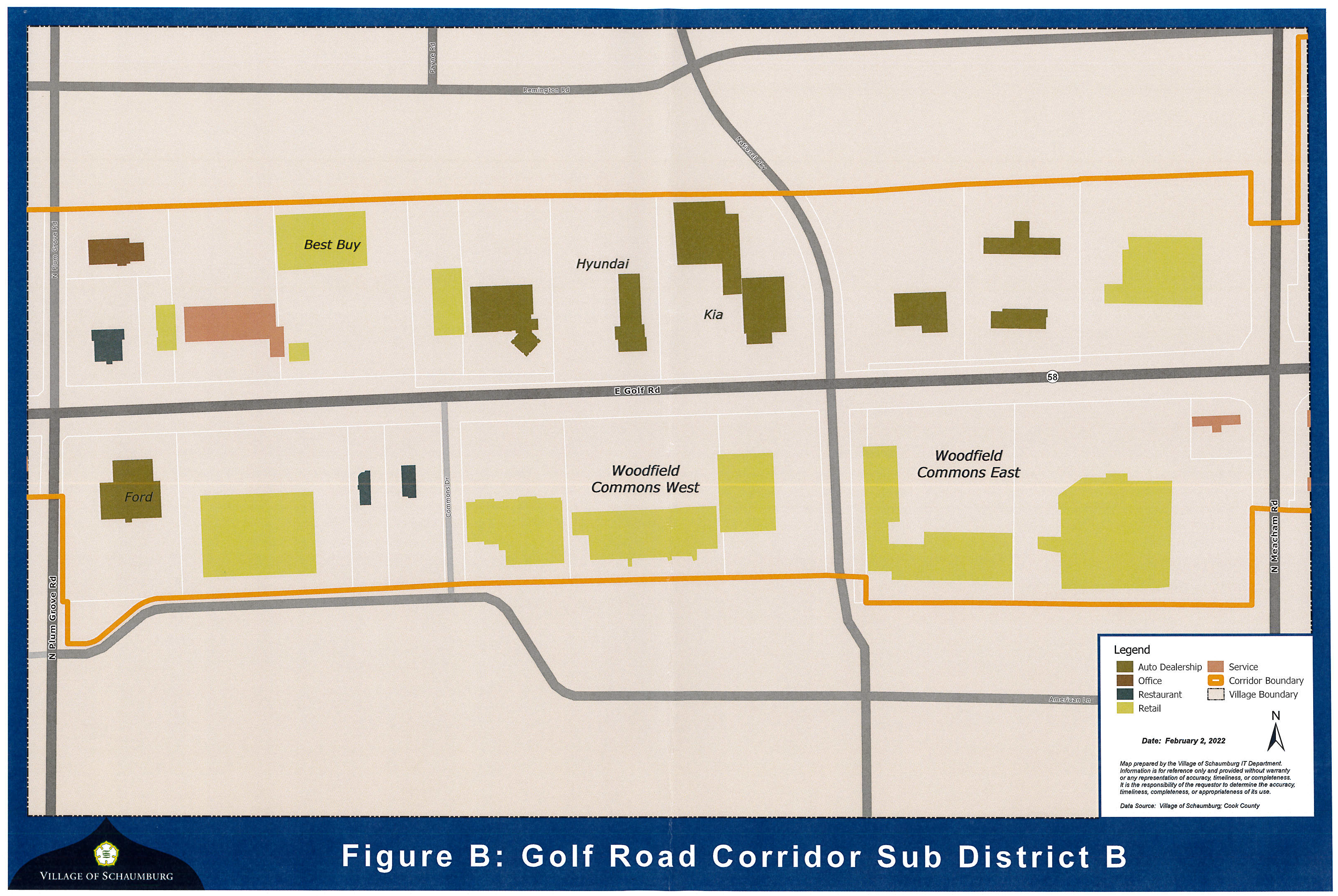 Boundaries: The Golf Road Corridor Overlay District boundaries are shown on the map in Figure 1. The geography of the corridor includes all properties located along Golf Road, east of Stonehedge Drive and west of Interstate 290/Illinois Route 53. In addition, Figures A through D represent each of the four (4) sub-districts within the corridor and Figures E through G represents each of the three (3) key corner intersections.