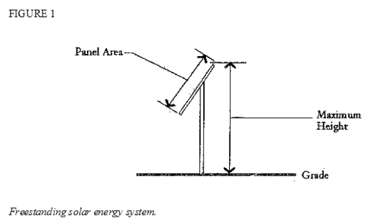 Height: Height is measured from the average grade at the base of the tower to the highest edge of the system. Refer to subsection (D), Figure 5 of this section.
