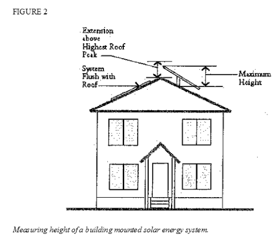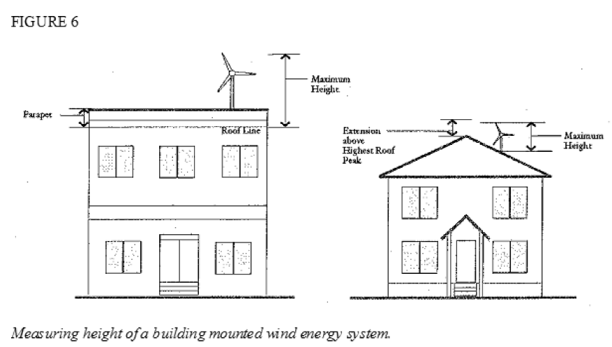 Height: Height is measured from the roof surface on which the system is mounted to the highest edge of the wind turbine. Refer to subsection (D), Figure 6 of this section.