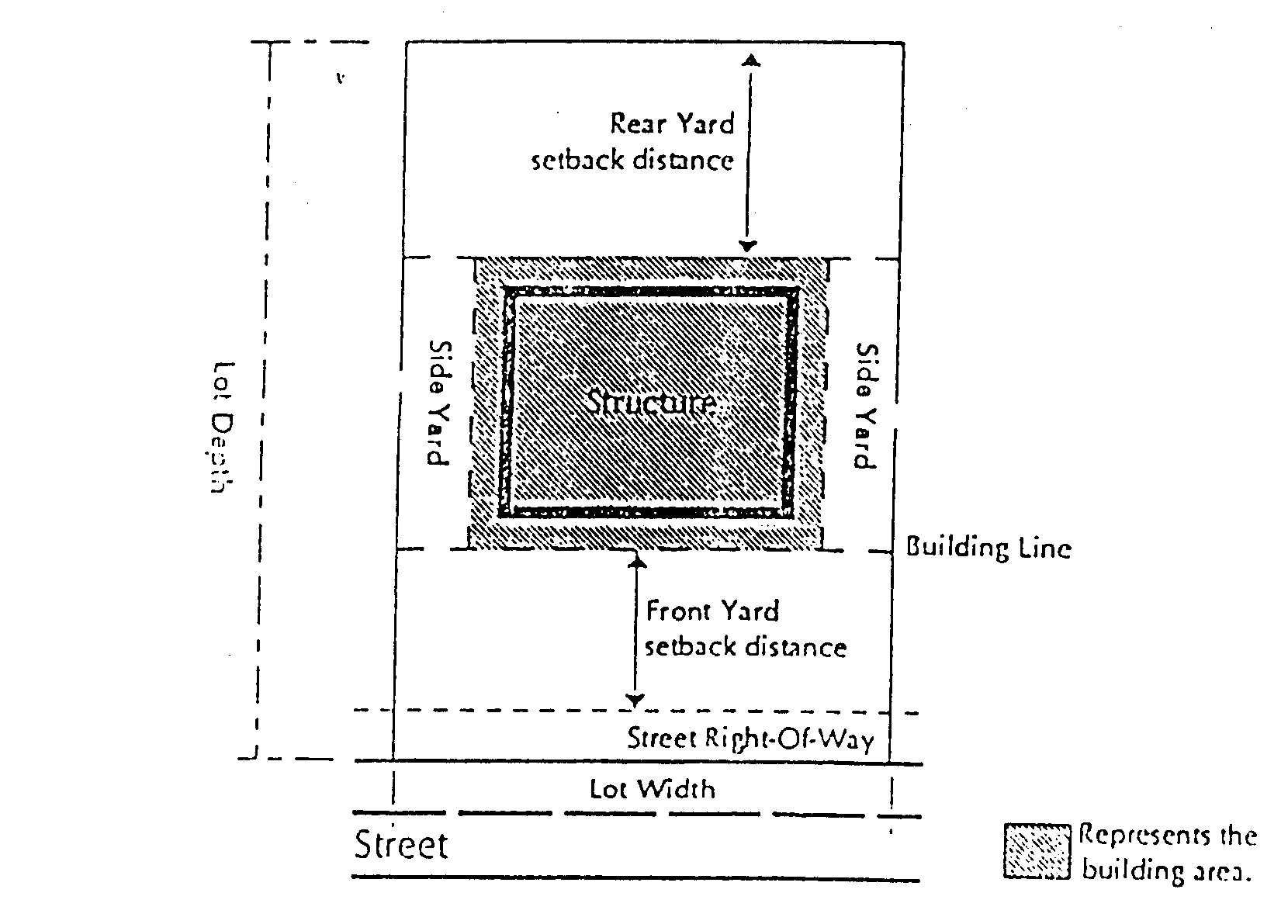 SETBACKS, SIDE YARDS AND BUILDING AREA