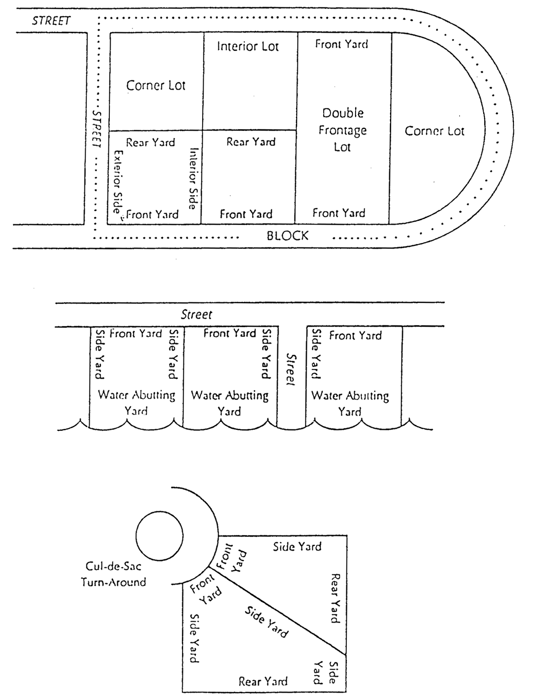 Yard (see graphic 1-A at the end of this section of the ordinance):