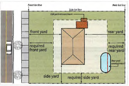 Encroachments into Required Yards. Certain STRUCTUREs and architectural features may project into the required yard SETBACKs, as shown in Table 2-4 E.