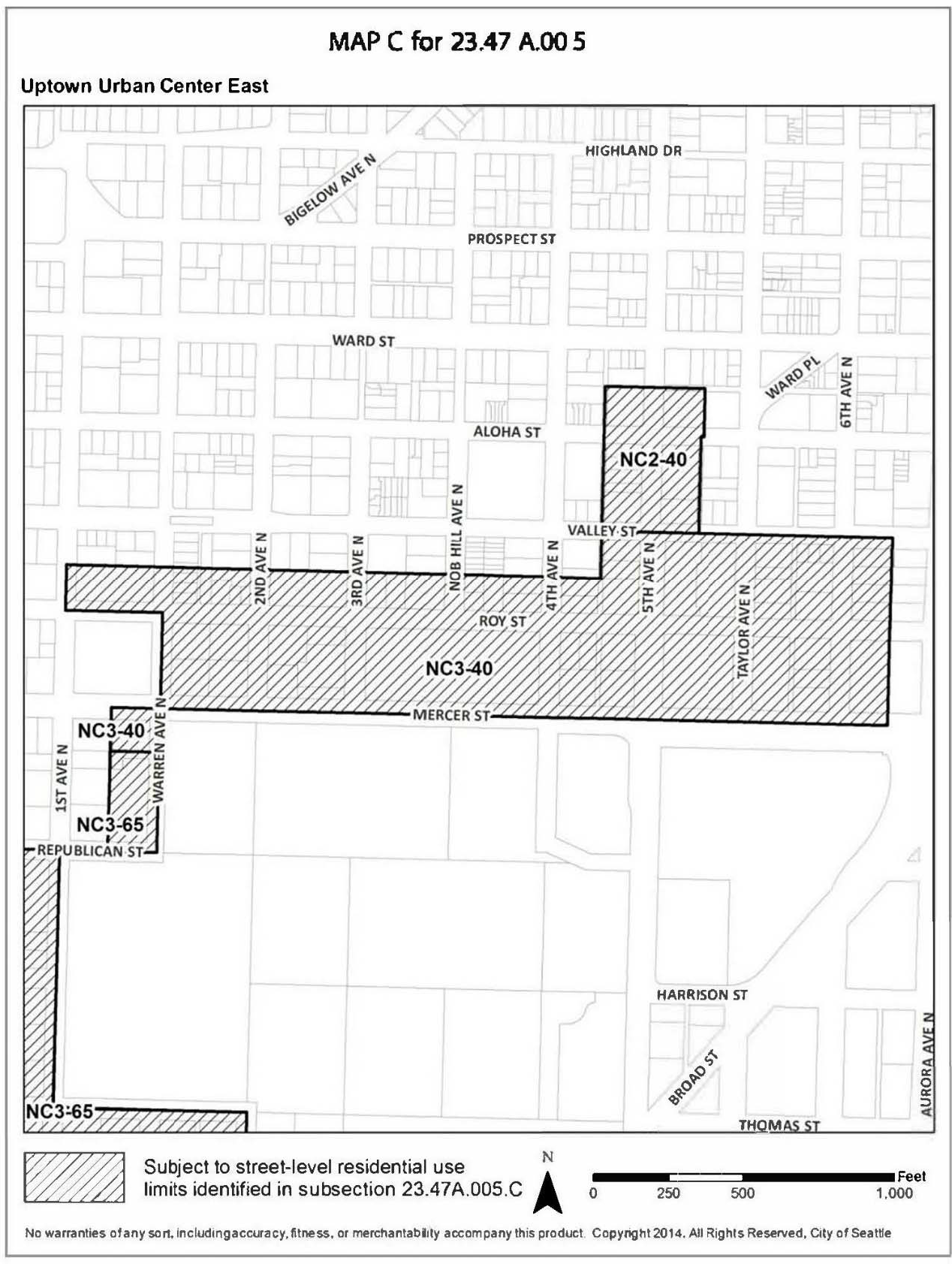 In all NC and C1 zones within the areas shown on Maps A through D for 23.47A.005 at the end of this Chapter 23.47A when facing an arterial street.
