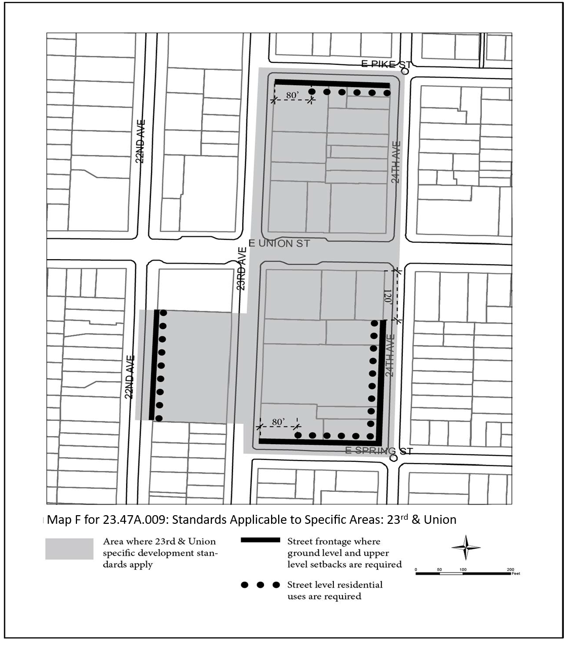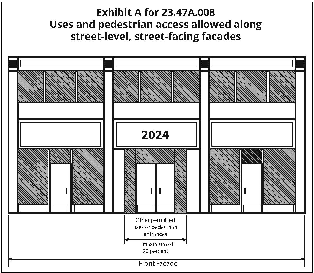 Along designated principal pedestrian streets, one or more of the following uses are required along 80 percent of the street-level, street-facing facade in accordance with the standards provided in subsection 23.47A.008.C.