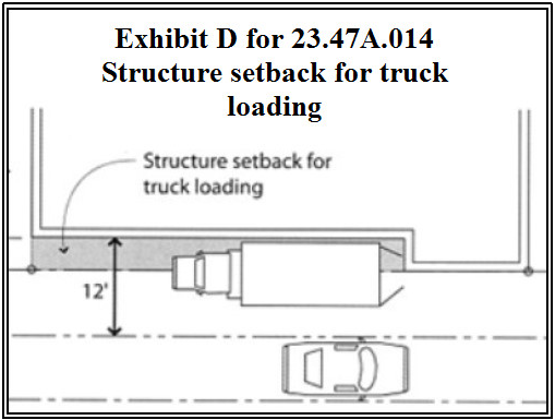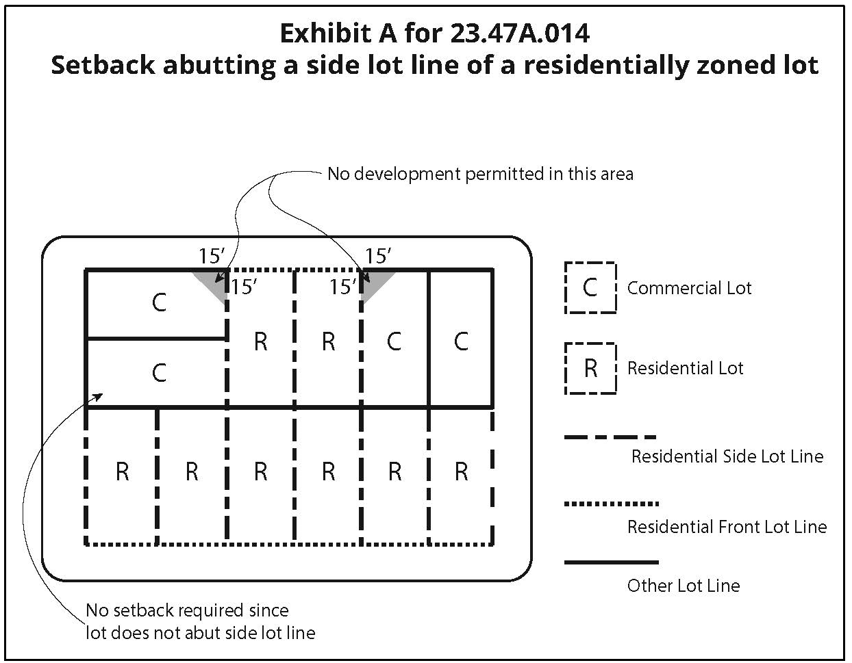 Parking shall not be located between a structure and a street lot line (Exhibit A for 23.47A.032).