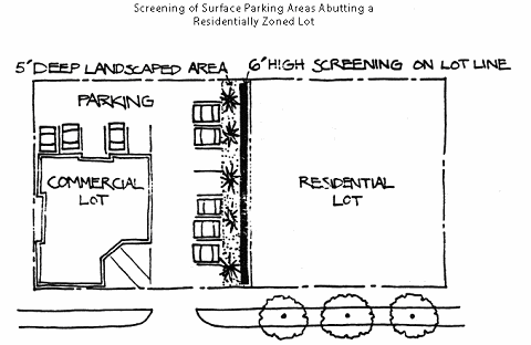 In pedestrian designated zones, surface parking is prohibited abutting the street lot line along a principal pedestrian street.