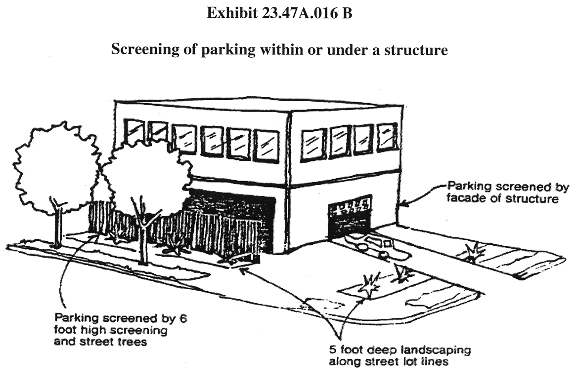 Parking shall be screened according to the provisions of Section 23.47A.016.