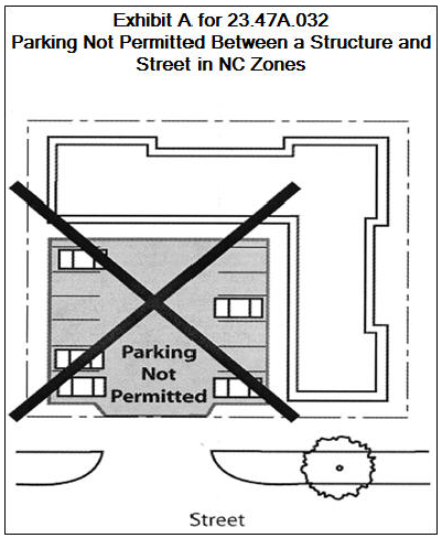 Parking Not Permitted Between a Structure and Street in NC Zones