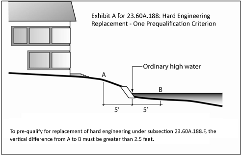 A bulkhead has deteriorated such that an ordinary high water (OHW) mark has been established by the presence and action of water landward of the bulkhead, and the replacement bulkhead is located at or near the actual OHW mark; and