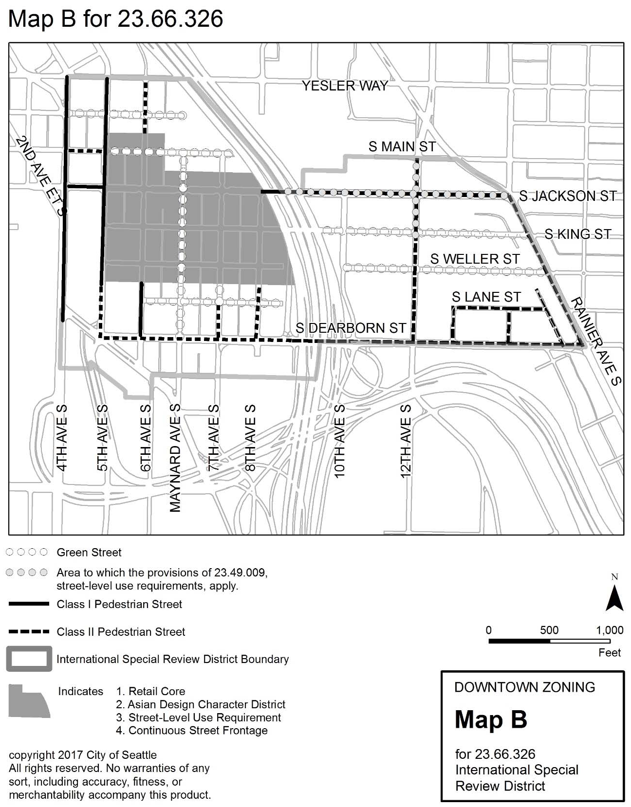 Asian Design Character District. The boundaries of the Asian Design Character District of the International District are as shown on Map B for 23.66.326. To strengthen and preserve the existing Asian architectural character of the Asian Design Character District, tiled awnings, recessed balconies, heavy timber construction, and materials and colors as specified below are encouraged.