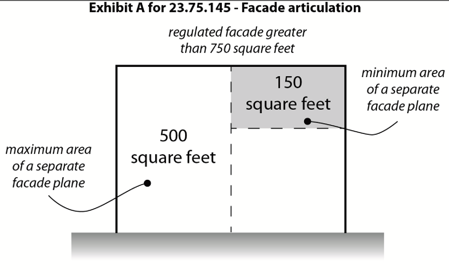 The standards in this Section 23.75.170 apply to the portion of a regulated facade between 18 inches and 12 feet above finished grade at the base of the facade.