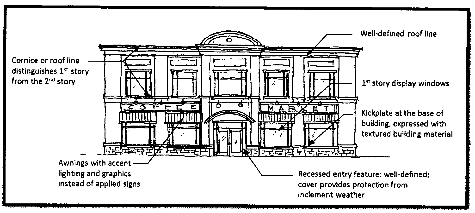 Architectural treatments mean enhancements applied to a building façade through painting, horizontal and vertical banding, belt courses, decorative cornices, simulated or faux texturing, or other similar material applications to provide ornamentation and visual interest.