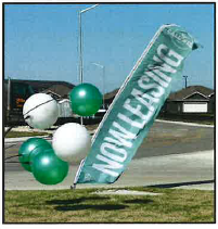 Inflatable sign: A temporary sign made of a flexible material inflated with air that advertises or promotes events, sales, or businesses.