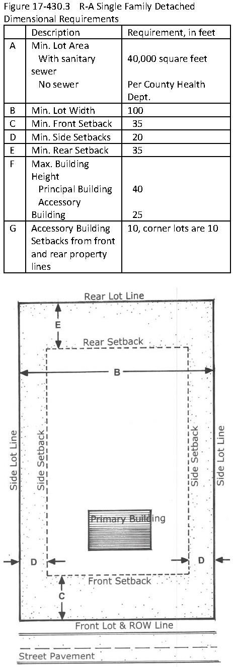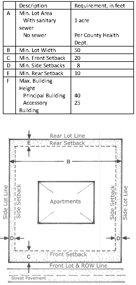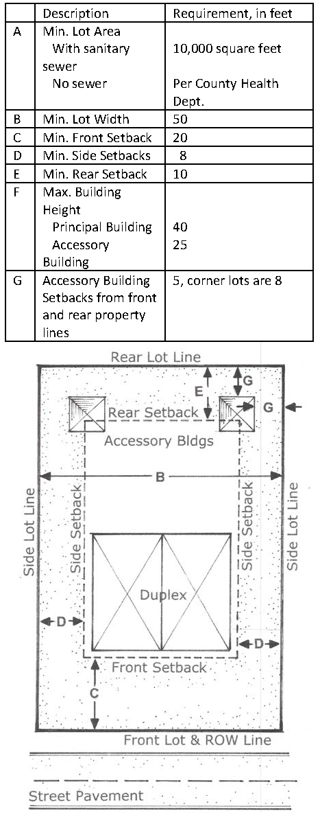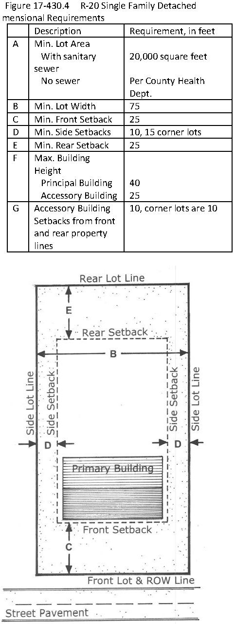 NOTE 1: R-20 Minimum lot size for a duplex is 25,000 sq. ft. Minimum lot size for a mobile home and all other uses is one-half (½) acre.