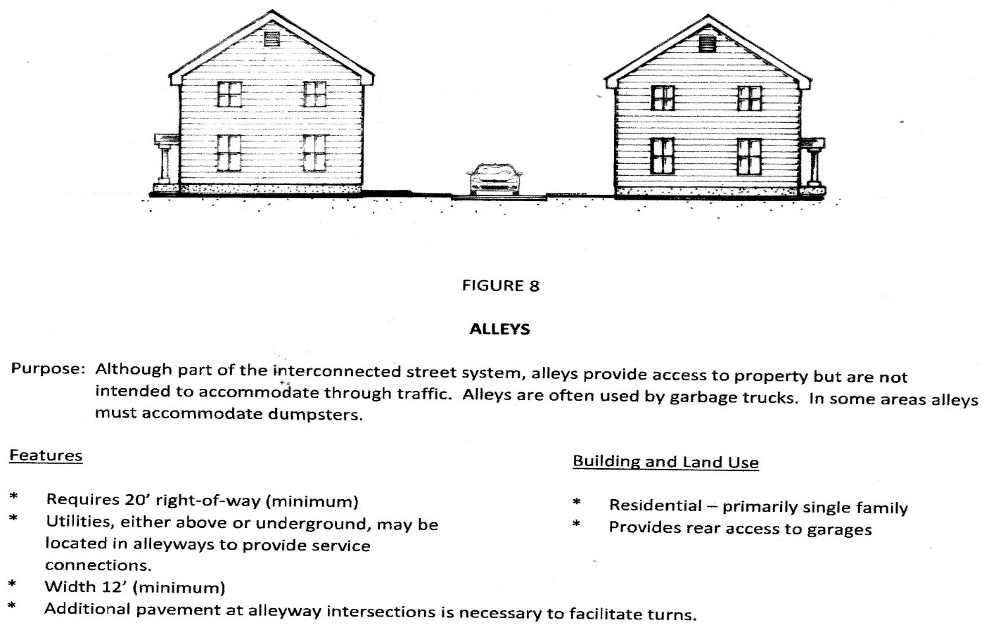 In newly proposed developments all streets are required to be built to Town standards to assure that refuse collection vehicles will have adequate access. Readers are referred to Appendix B for further design standards.