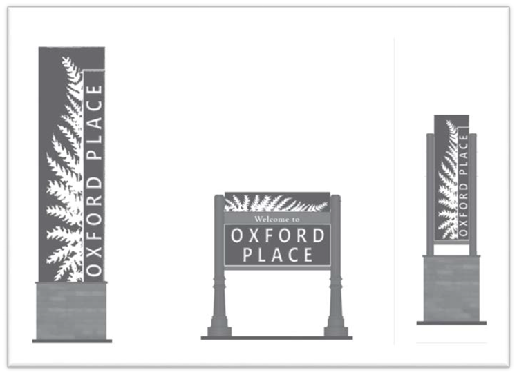 Gateway Feature Entrance signs are permitted at the main entrances of Oxford Place at the intersections of: