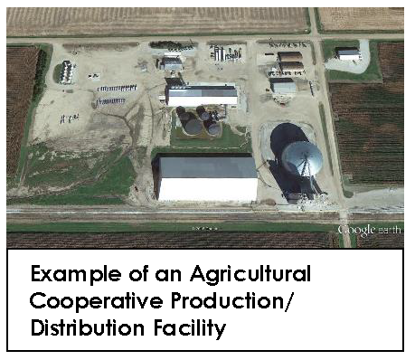 AGRICULTURAL COOPERATIVE PRODUCTION/DISTRIBUTION FACILITY shall mean any facility owned and operated by a cooperative or other corporation for the purpose of manufacturing, distributing, and storage of fertilizers, herbicides and grain. This includes the offices, scales and parking areas necessary for trucks and other vehicles.