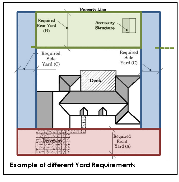 YARD shall mean any open space on the same lot with a building or a dwelling group, which open space is unoccupied and unobstructed from the ground upward to the sky, except for building projections or for accessory buildings or structures permitted by this Ordinance.