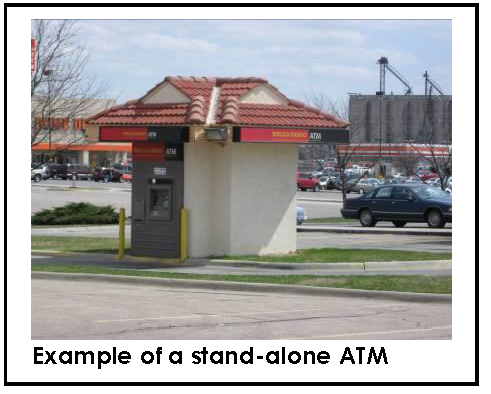 AUTOMATIC TELLER MACHINE (ATM) shall mean an automated device that performs banking or financial functions at a location remote from the controlling financial institution.