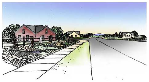 New residential development in the Town core should have detached sidewalks with a minimum six (6)-foot tree lawn. Alleys are encouraged and may be gravel, not paved.