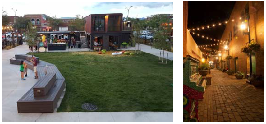 Plazas and outdoor gathering spaces are encouraged. Mountain views will be preserved when applicable.